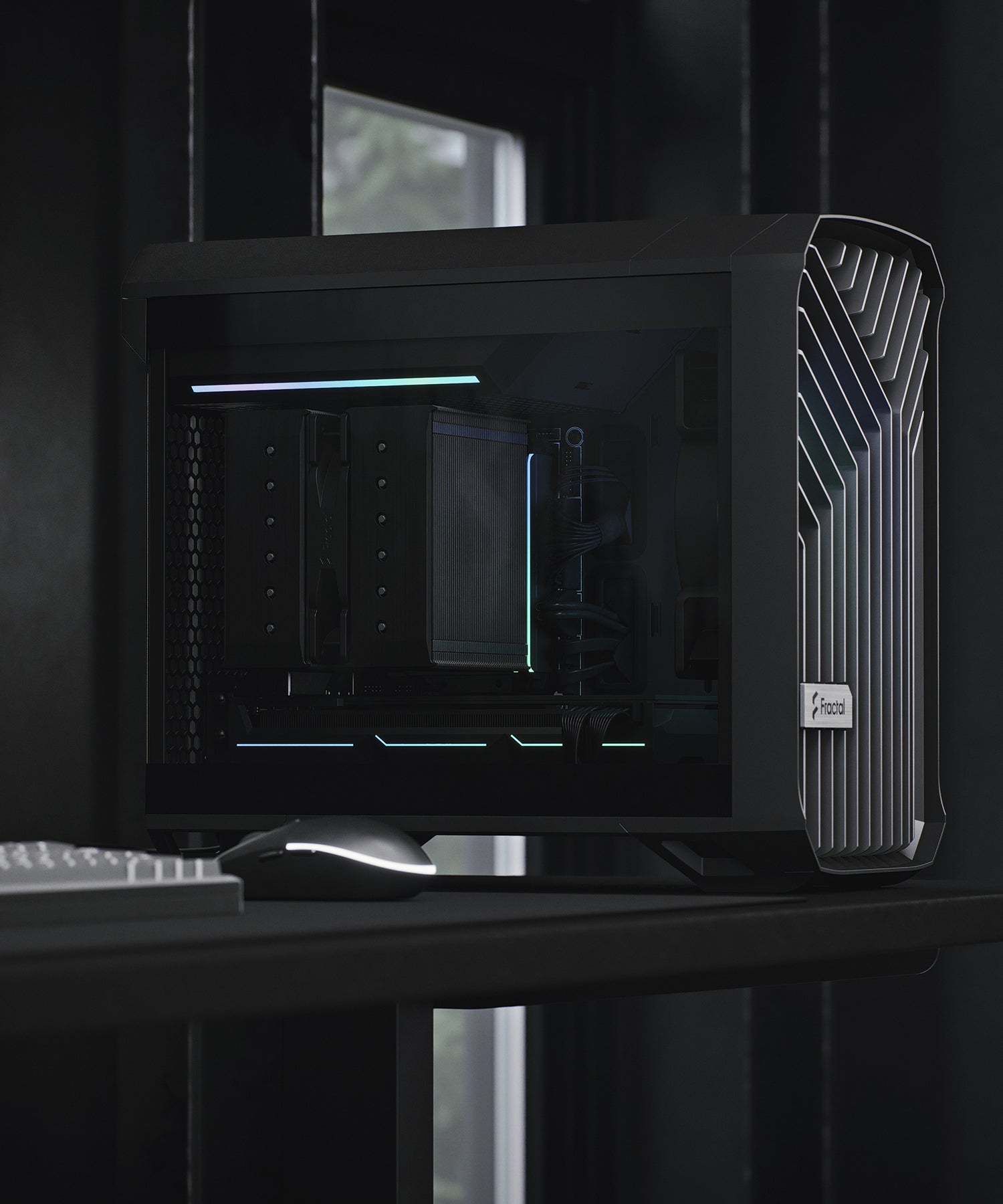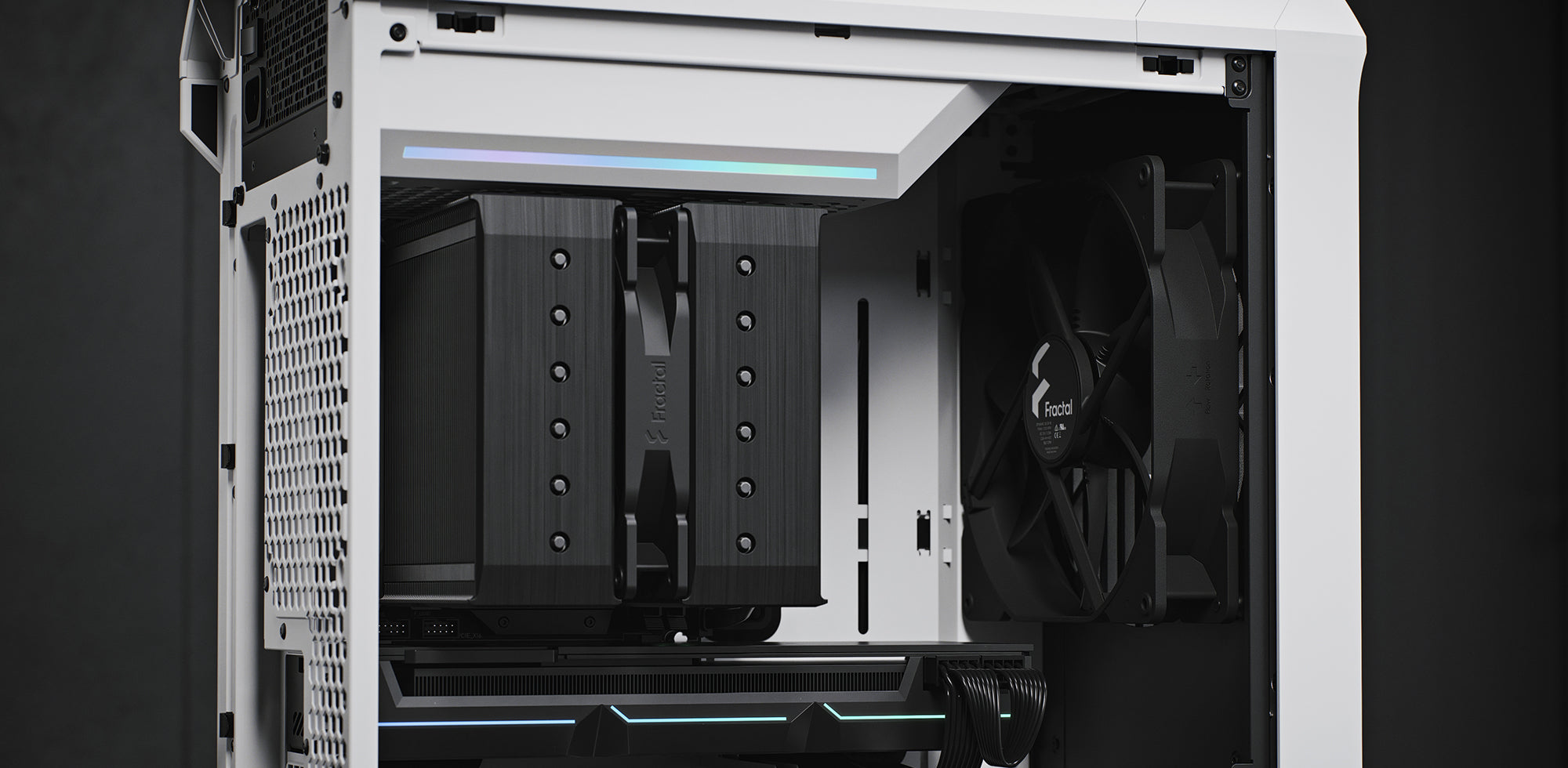 隨附的 Fractal Design 180 x 38 mm 風扇結合強勁動力,帶來強大空氣流動能力。前風扇支架設計確保大型風扇氣流不受阻礙,同時相容標準尺寸的散熱排。前面板可拆卸,讓前方與底部的防塵濾網輕鬆取用與清潔。