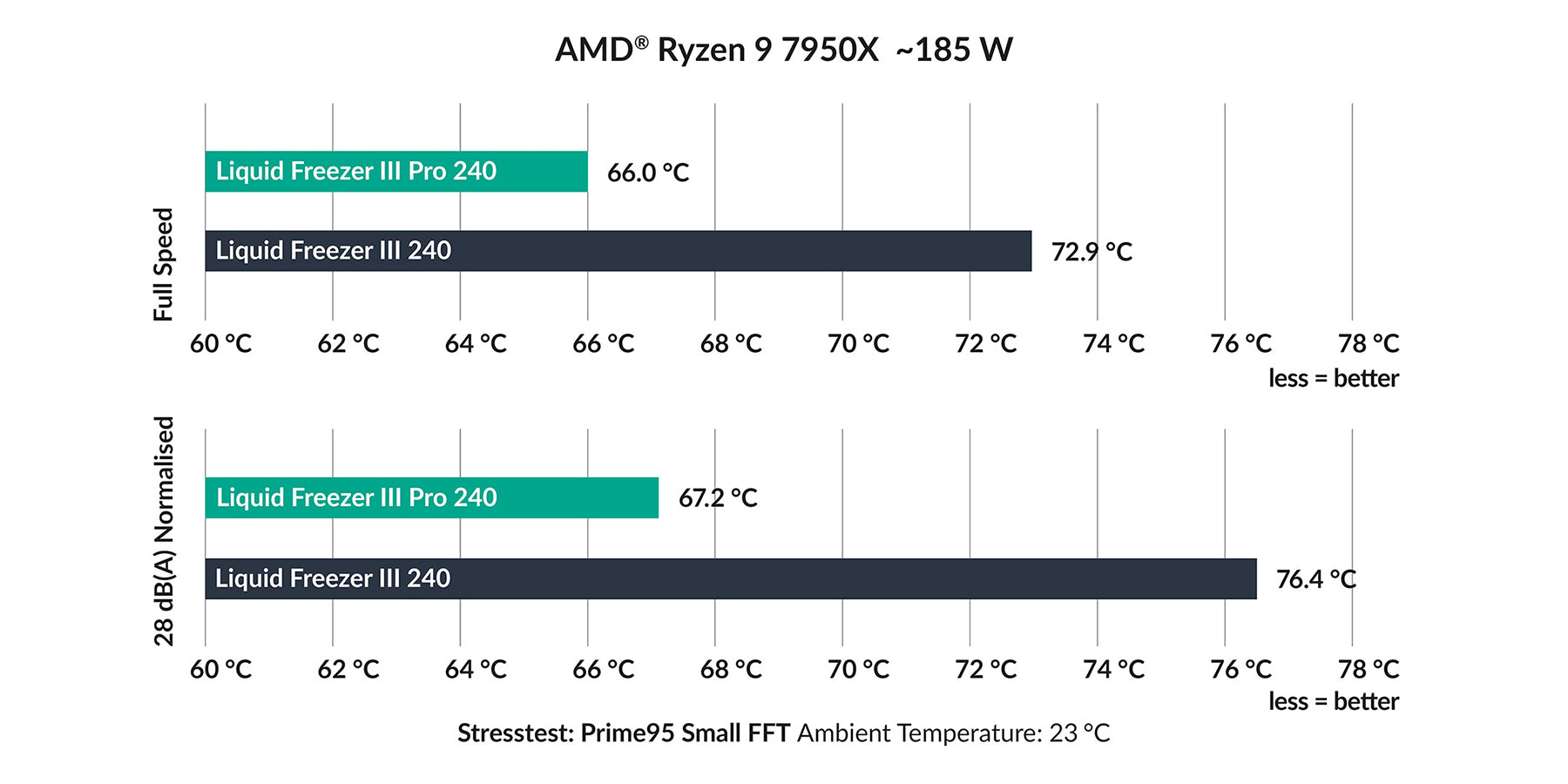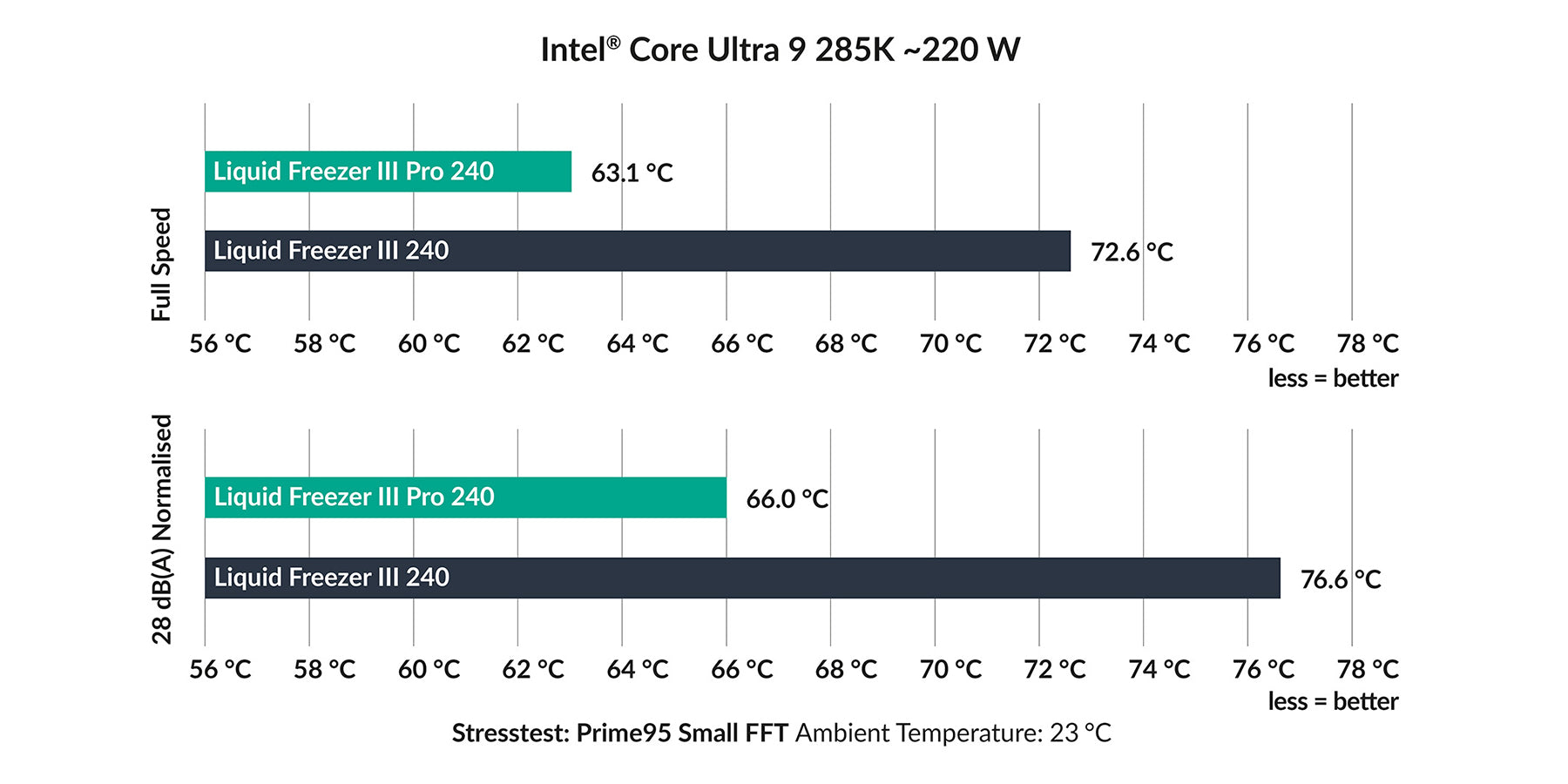 在獨立測試中,Liquid Freezer III Pro 在所有價格類別的競爭中脫穎而出,尤其是由於其出色的性能。在噪音標準化測試中,Liquid Freezer III Pro展現了其真正的實力,憑藉安靜而強大的運行勝過許多競爭對手。