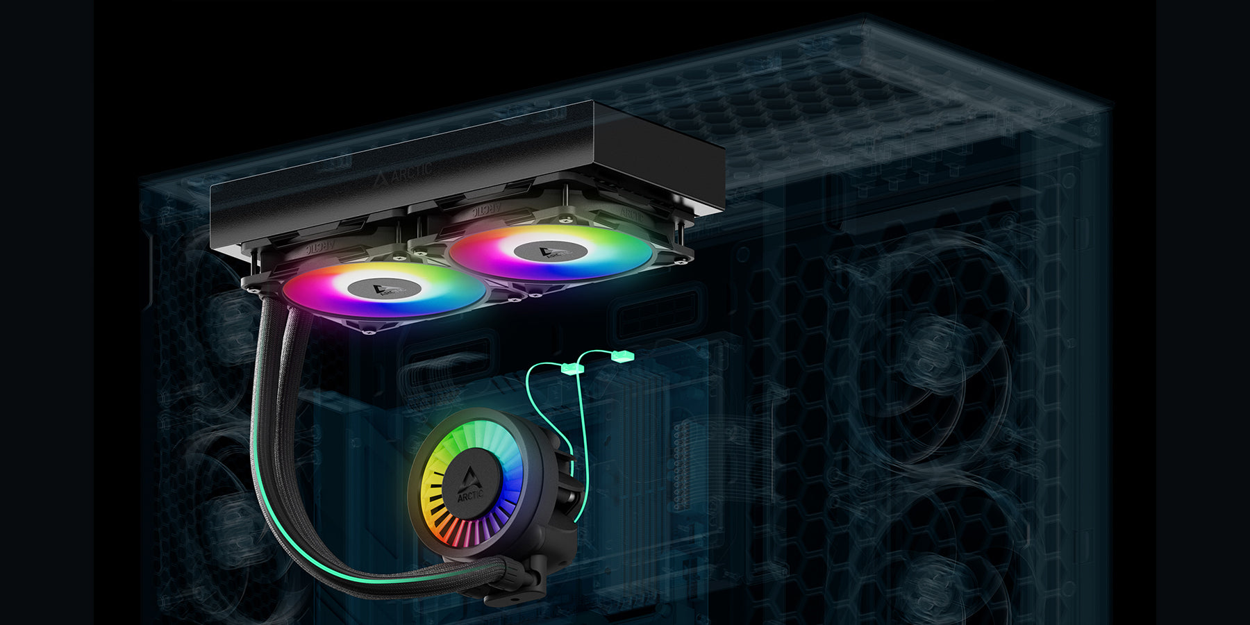 風扇電纜隱藏在軟管內。使用 Liquid Freezer III Pro,風扇電線整合於軟管護套中,只需要一條電纜連接主機板。不需要額外的分離器電纜,從而簡化了安裝並改善了整體外觀。