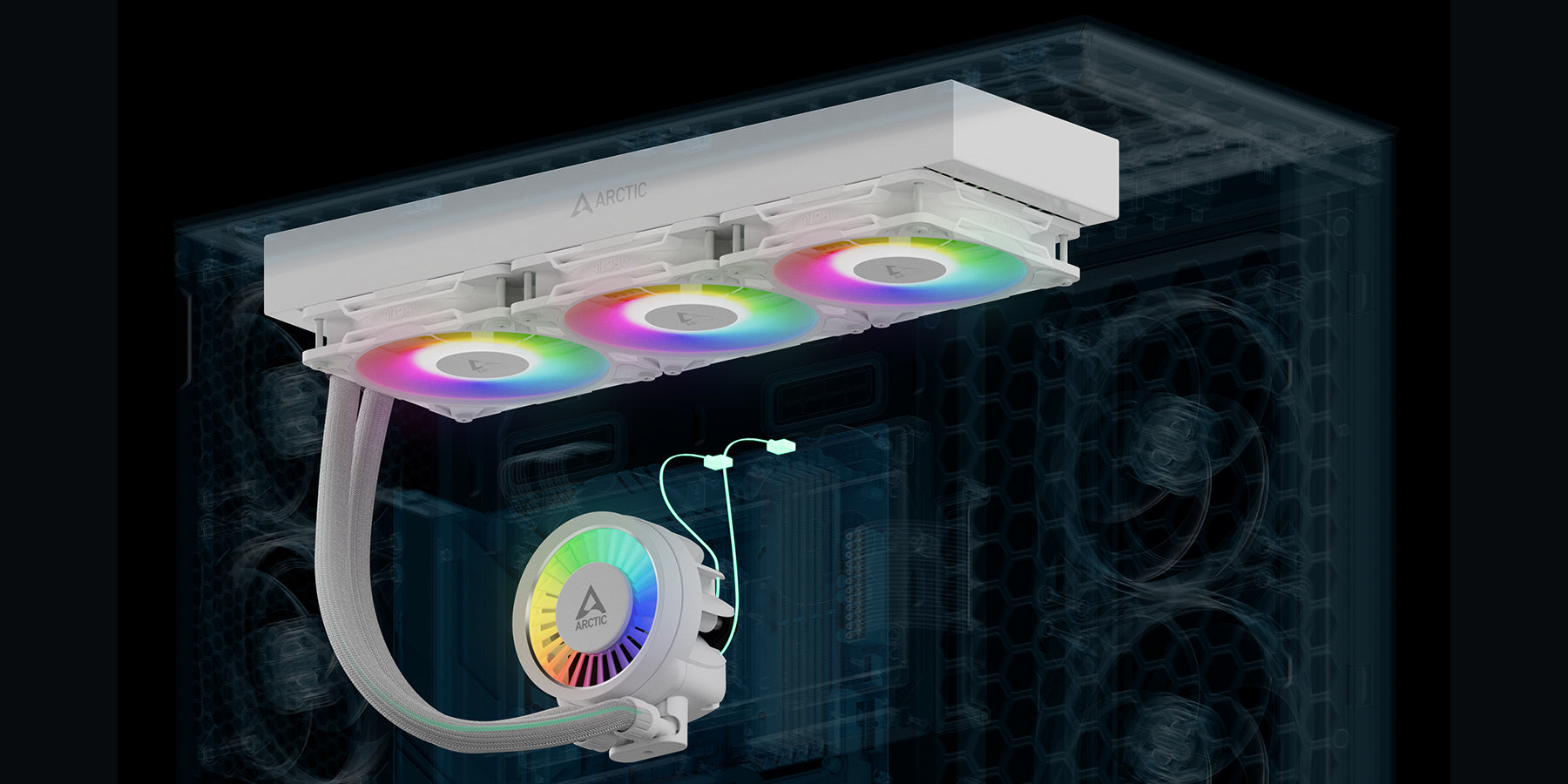 ARGB將屢獲獎項的高性能PWM水泵與針對靜壓力優化的新款ARGB靜音風扇結合,