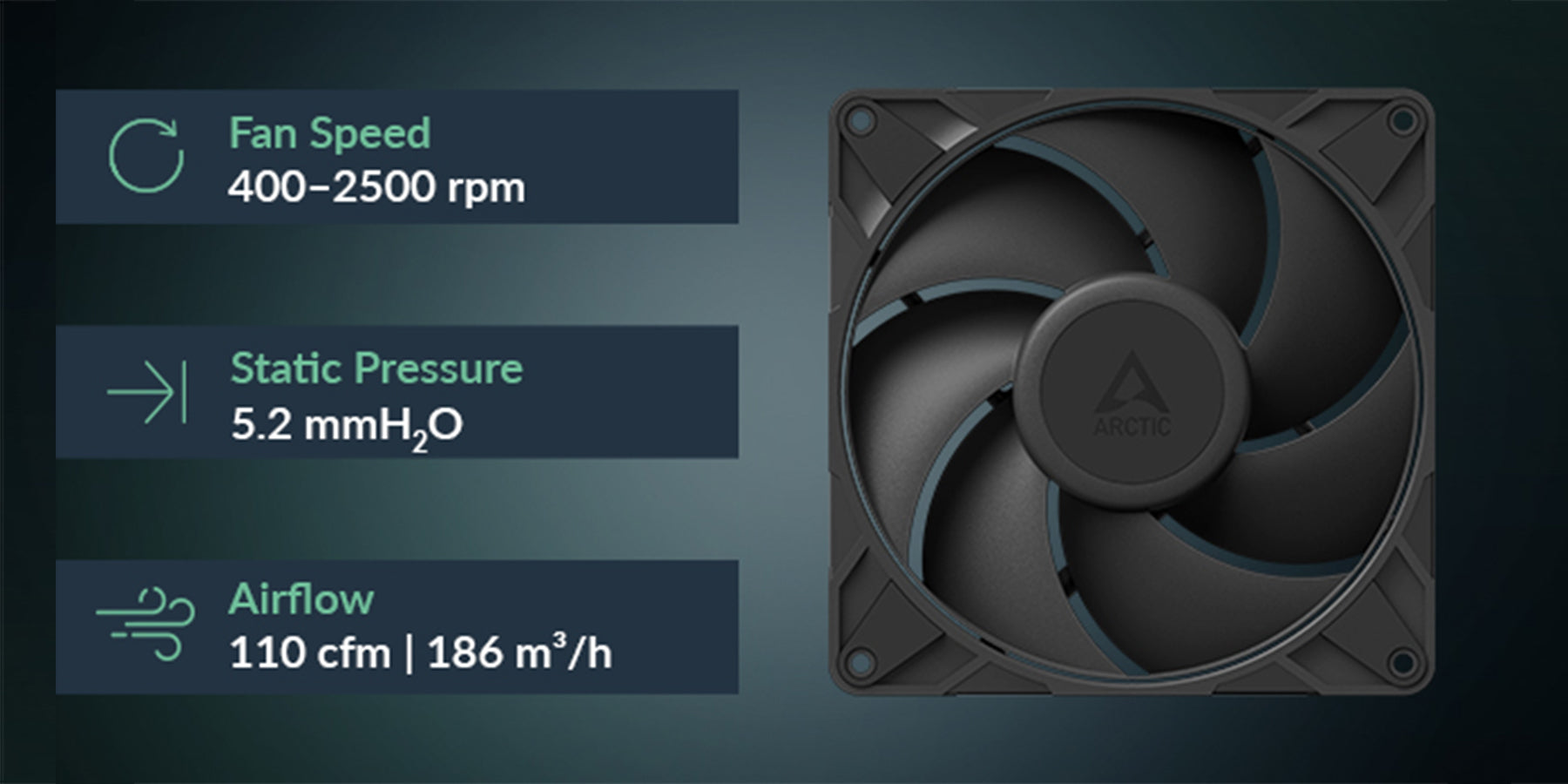 即使在低轉速下,風扇也能帶來顯著的效能提升,令人印象深刻。風扇額定噪音為 25 dB(A),可增強風量和靜壓,帶來安靜且高效的散熱效果。