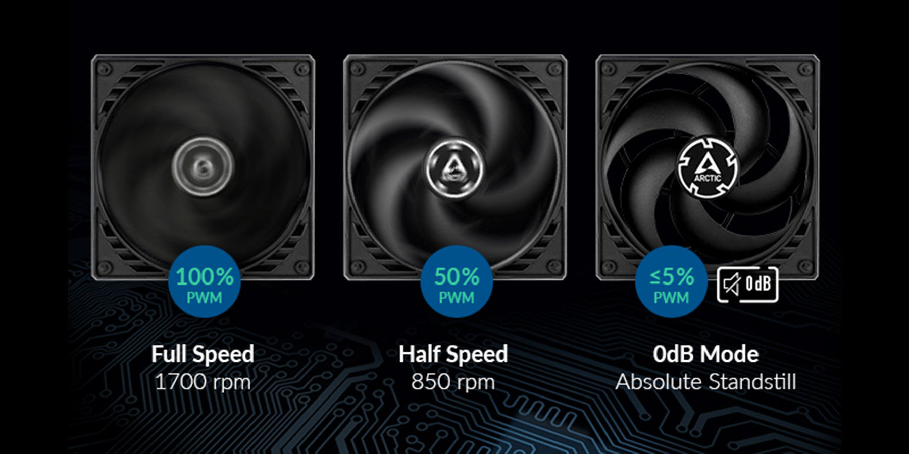 風扇的轉速允許透過PWM降低至靜止,讓風扇得以在閒置時停止運轉、降低噪音,並在隨時需要散熱時立即啟動,讓電腦隨時保持最佳效能。