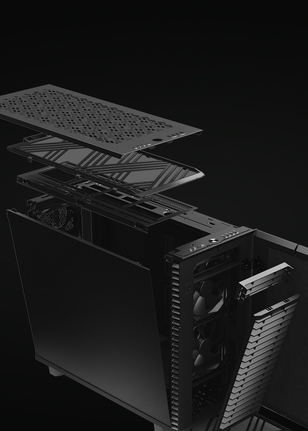 可拆式電源罩,魔術理線帶讓整線更加簡單,前部、頂部與底部配有抽取式防塵網