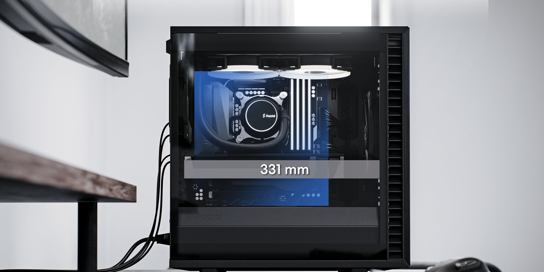 ◾ 可容納最長331 mm的GPU與頂部240 mm的散熱器