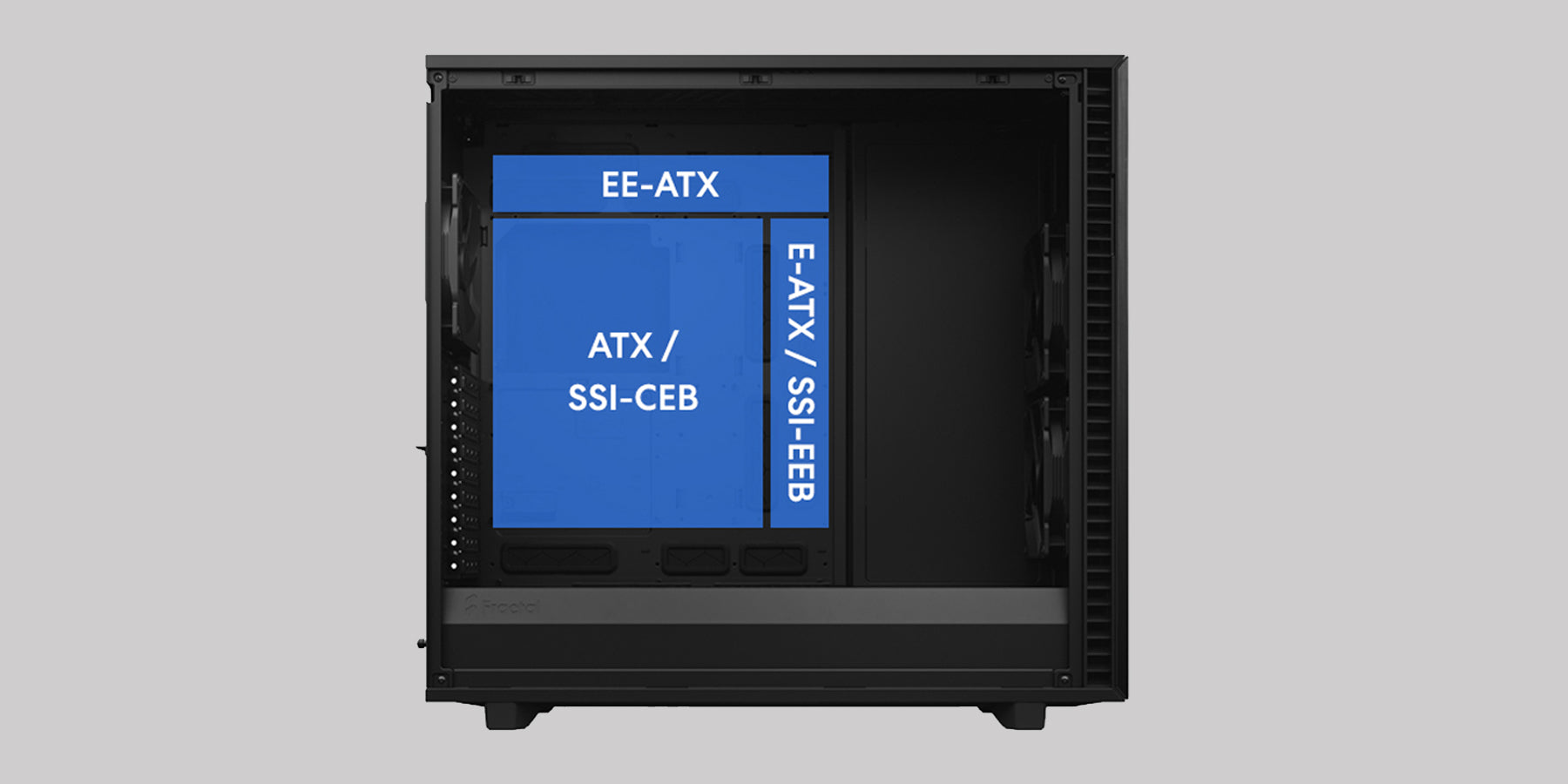Define 7 XL的內部大空間可容納E-ATX/SSE-EEB 285mm主機板