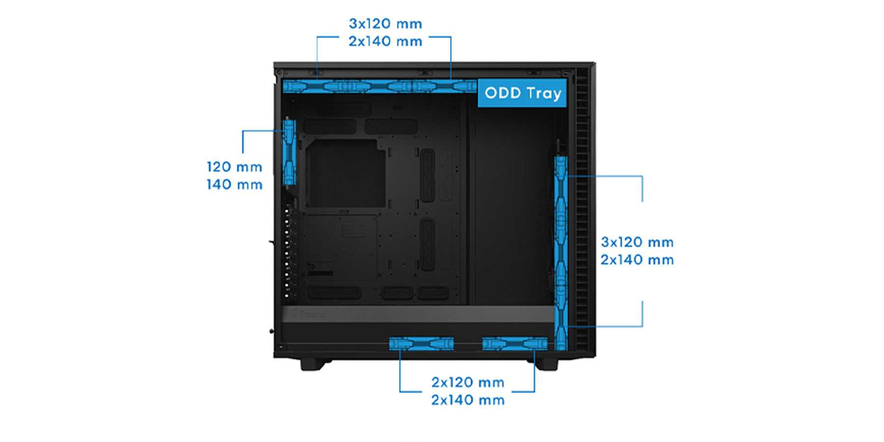 前置風扇:120mm*4或140 mm *3 (內附Dynamic X2 GP-14風扇 *2)
