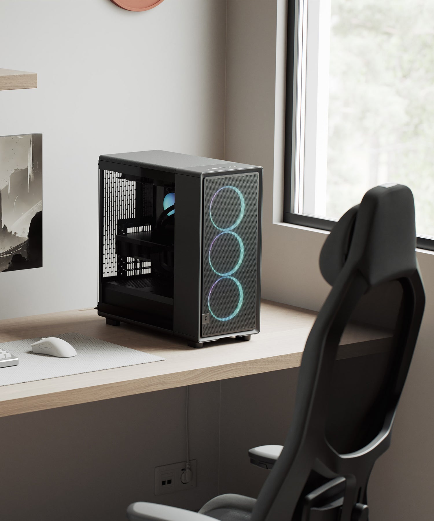 上方與前方的網孔面板搭配整潔內部設計,打造強勁自然氣流,保持高階硬體穩定運作