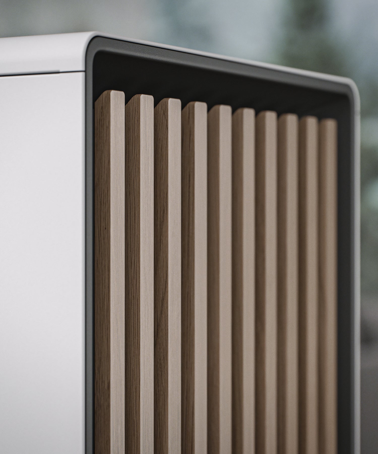 前面板飾條採用永續來源的橡木或胡桃木打造,展現獨特質感