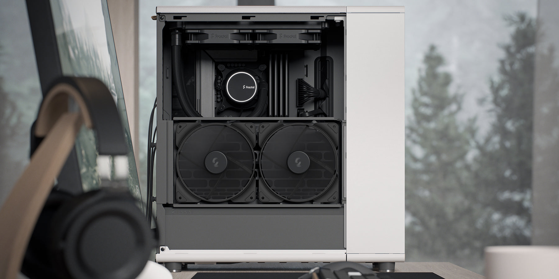 ◾ 前方預裝2顆140 mm風扇,支援360 mm水冷(主板高度限35 mm)