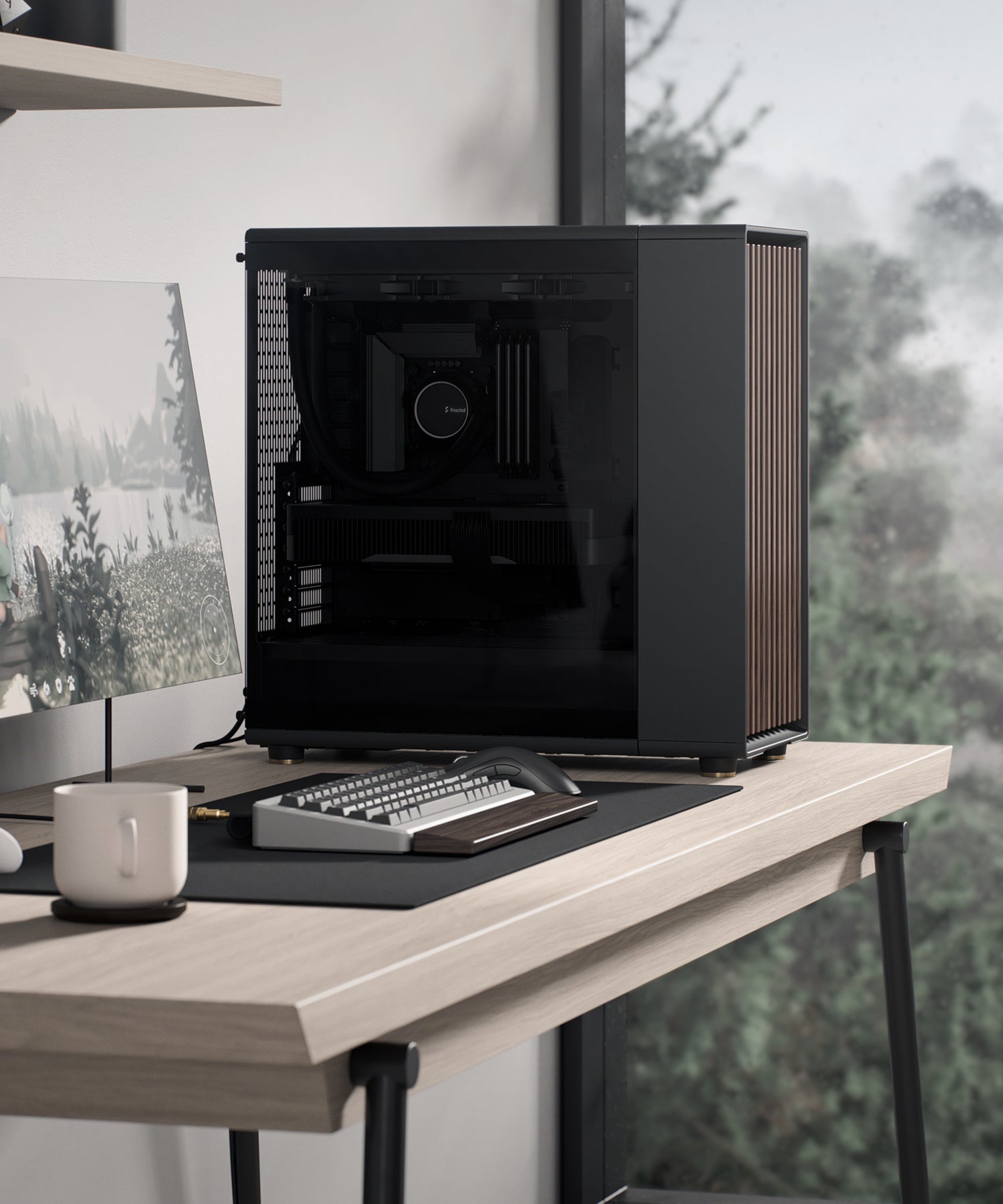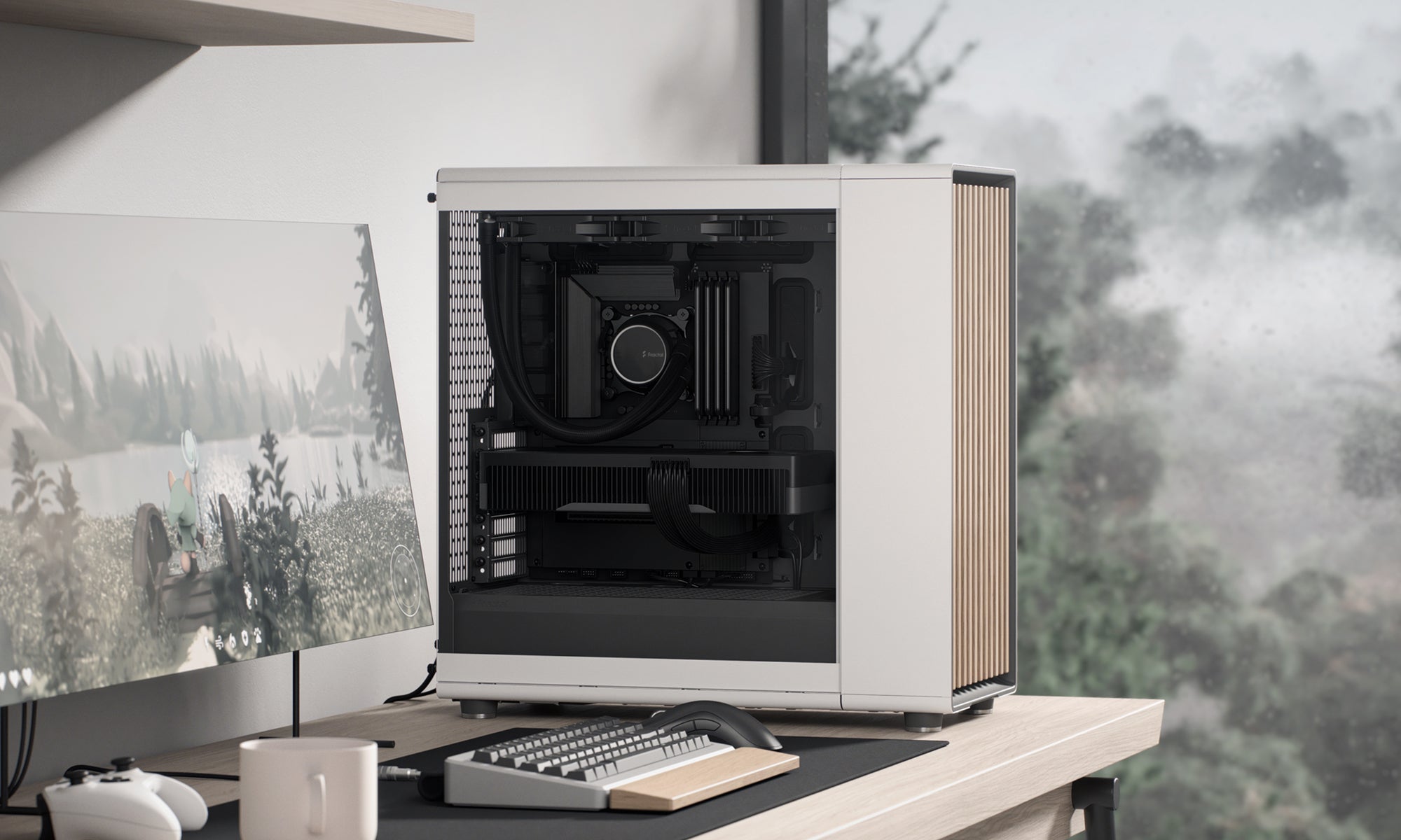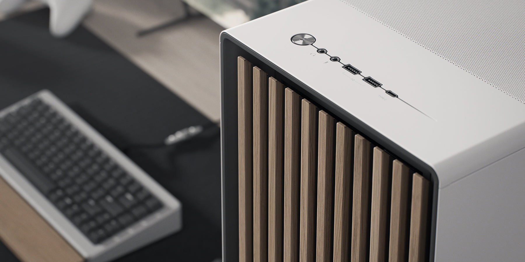 享受一款外型精緻、設計簡約的機殼,自然融入您的居家空間。採用 FSC 認證的橡木或胡桃木前板,搭配人造皮革拉片與俐落的鋼製或黃銅細節,在細節中展現質感與風格,為您的遊戲工作站注入溫潤而現代的美學。(黑色為胡桃木條,白色為橡木條)