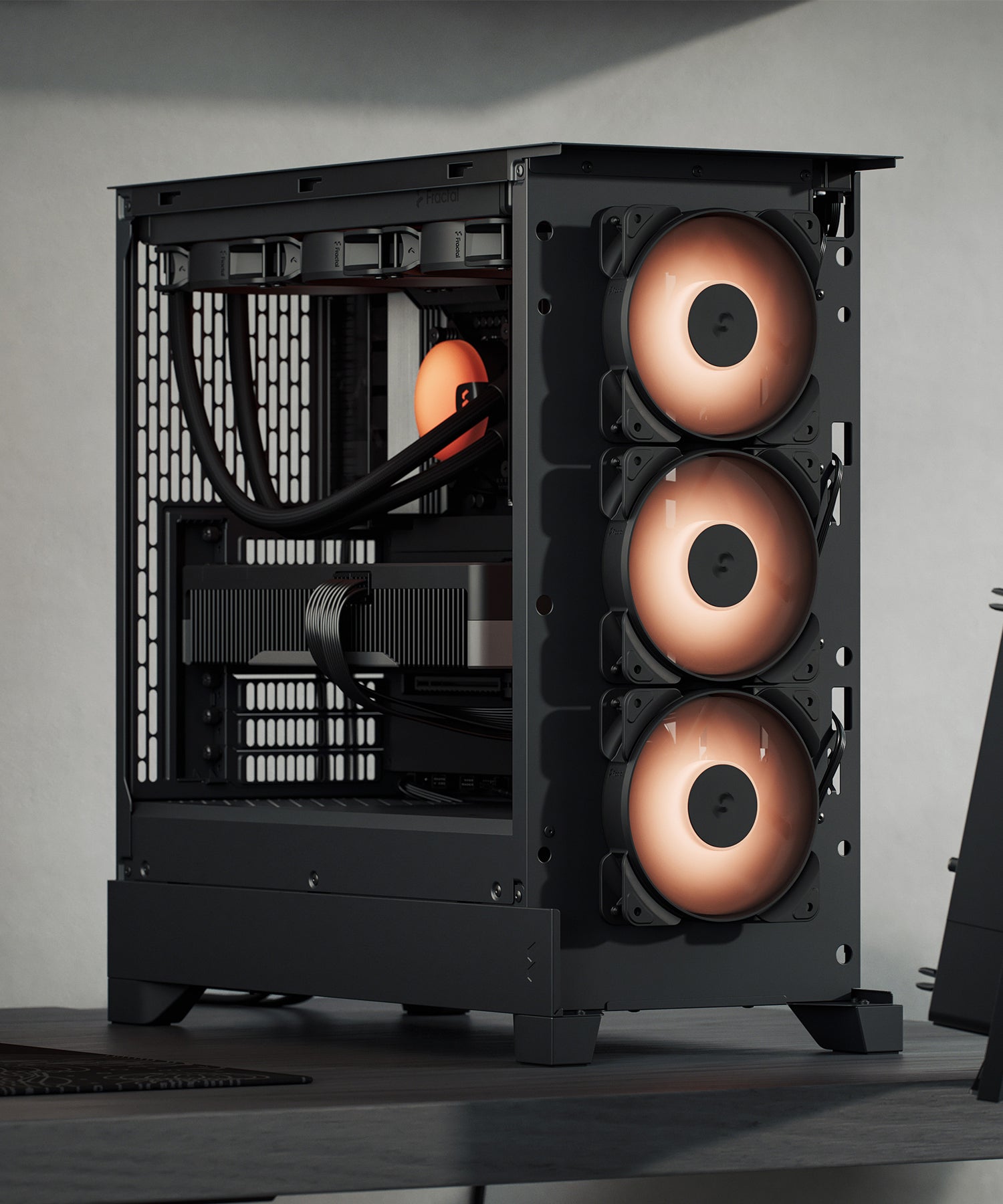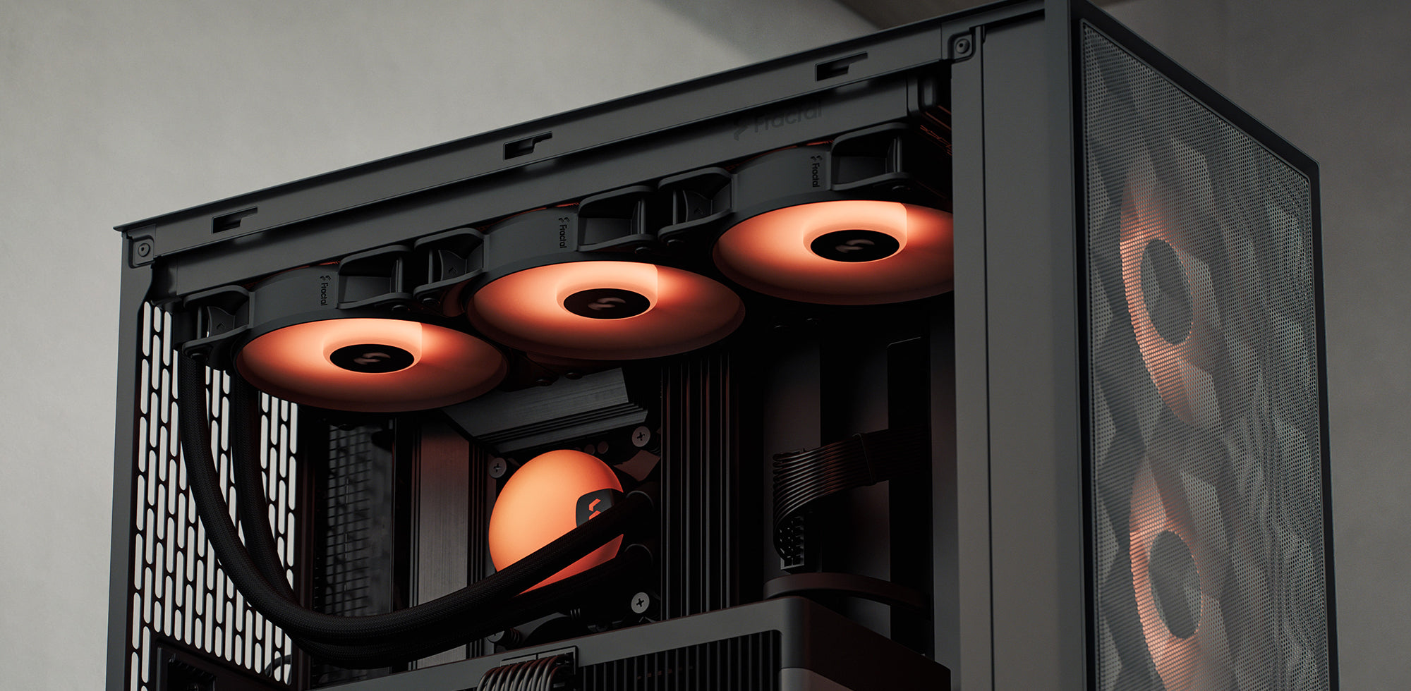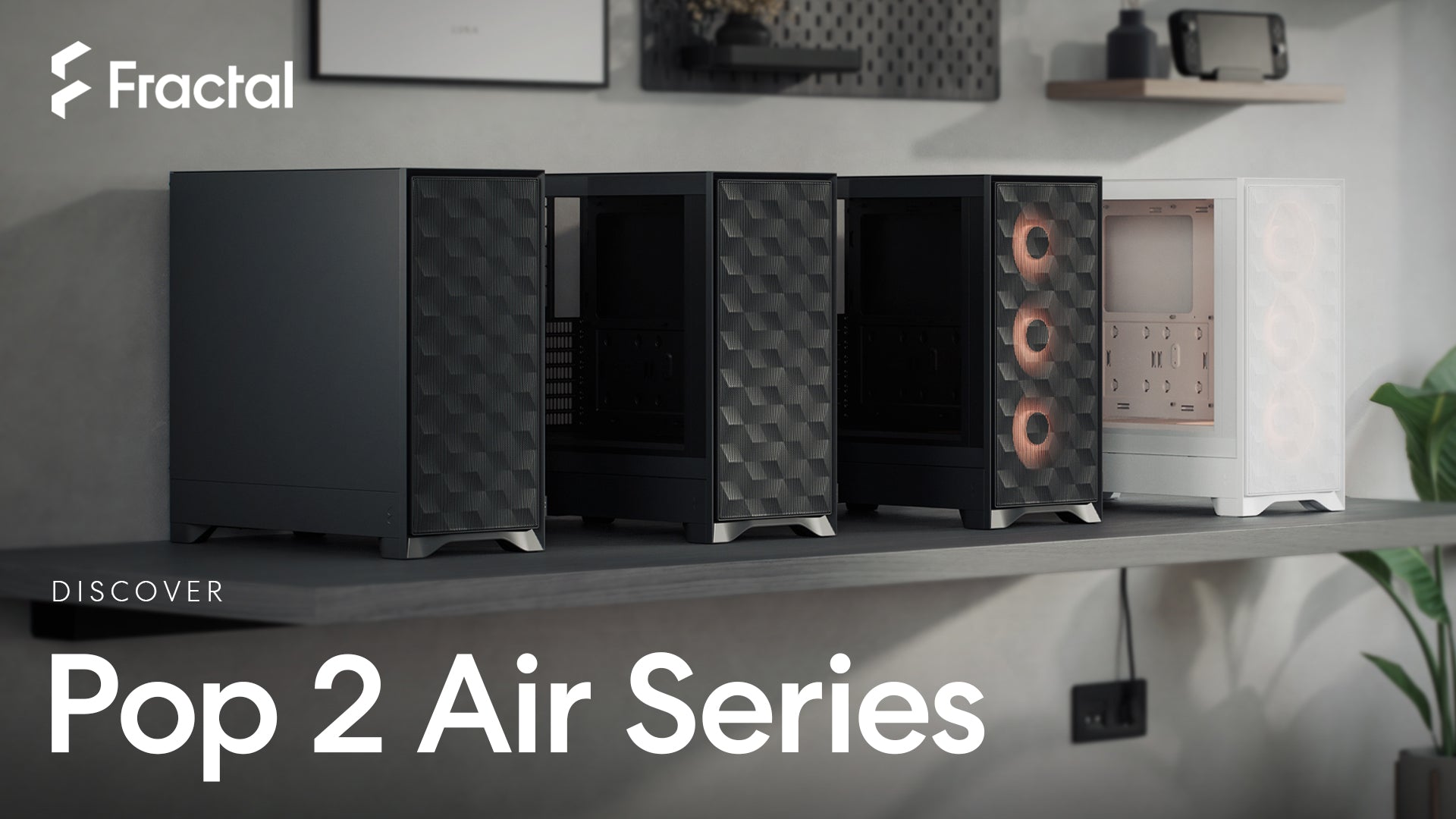 Pop2 Air 結合優異的氣流表現與俐落直覺的設計,開放式網孔前面板搭配隨附的三顆掃掠式扇葉風扇