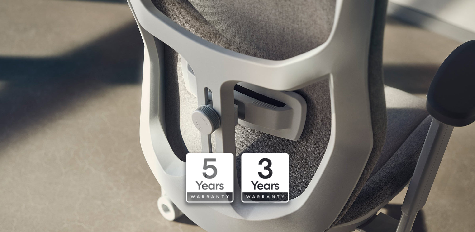 我們為椅子的機械零件提供 5 年保修,為軟質零件(例如內裝、腰部支撐墊、扶手和頭枕)提供 3 年保固。