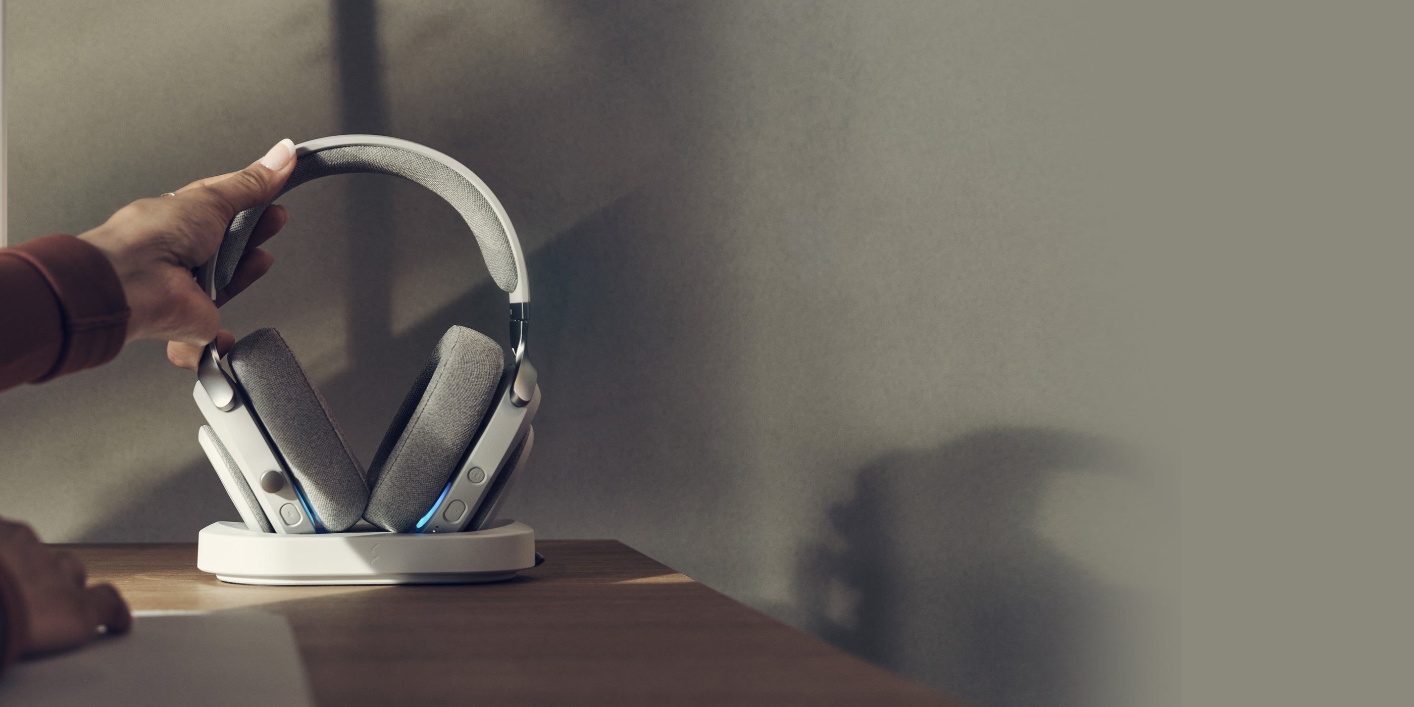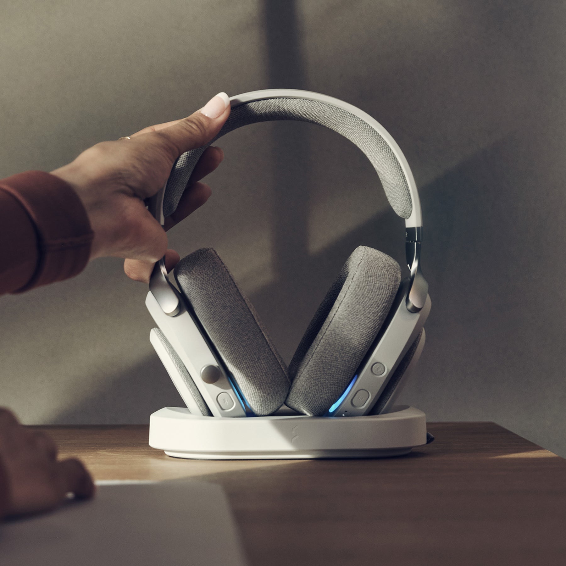 按下內建按鈕即可開啟耳罩照明燈效,增強氛圍,再次按下可完全關閉。
