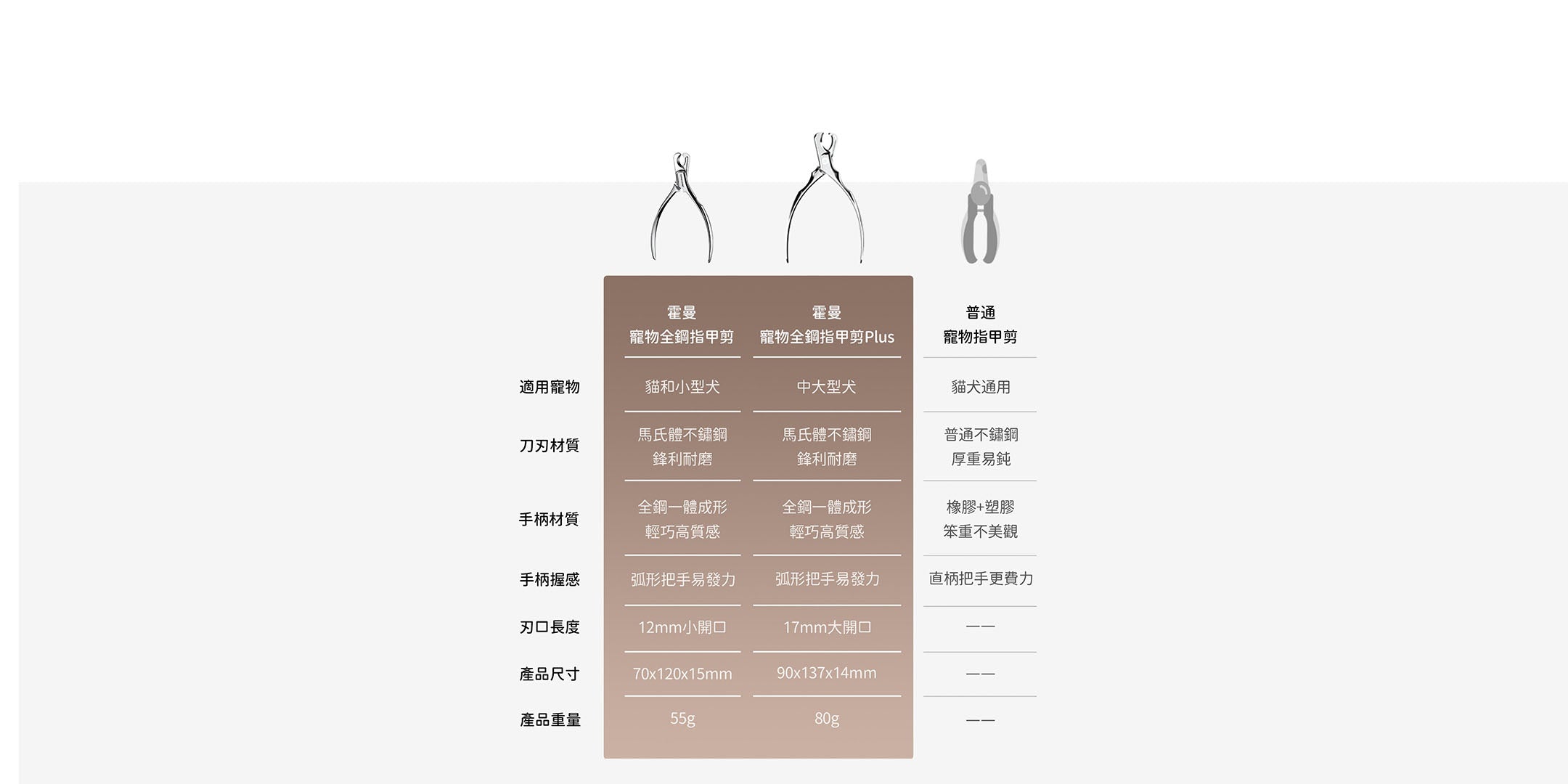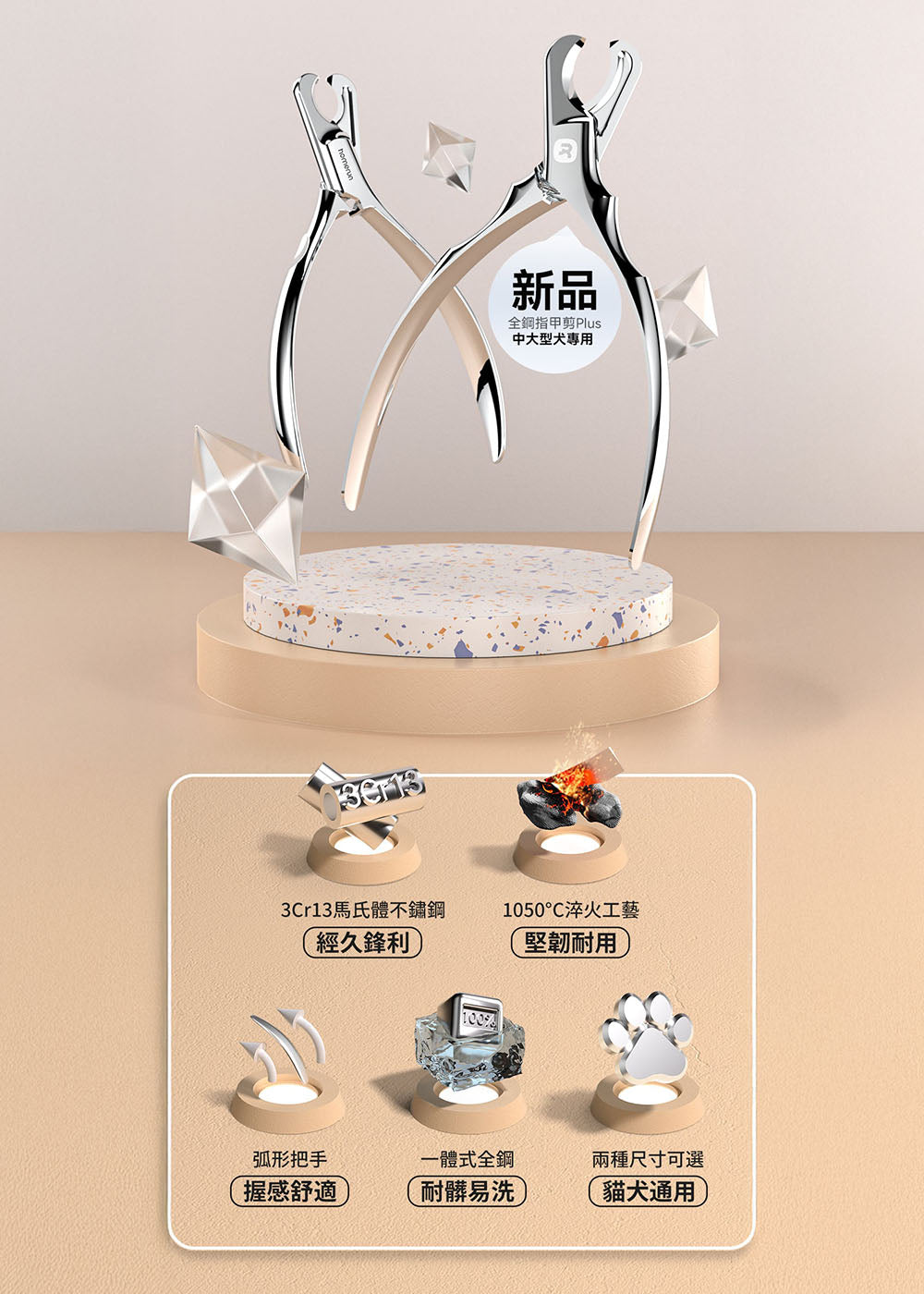 可依照毛孩甲型大小選擇適合的指甲剪款式