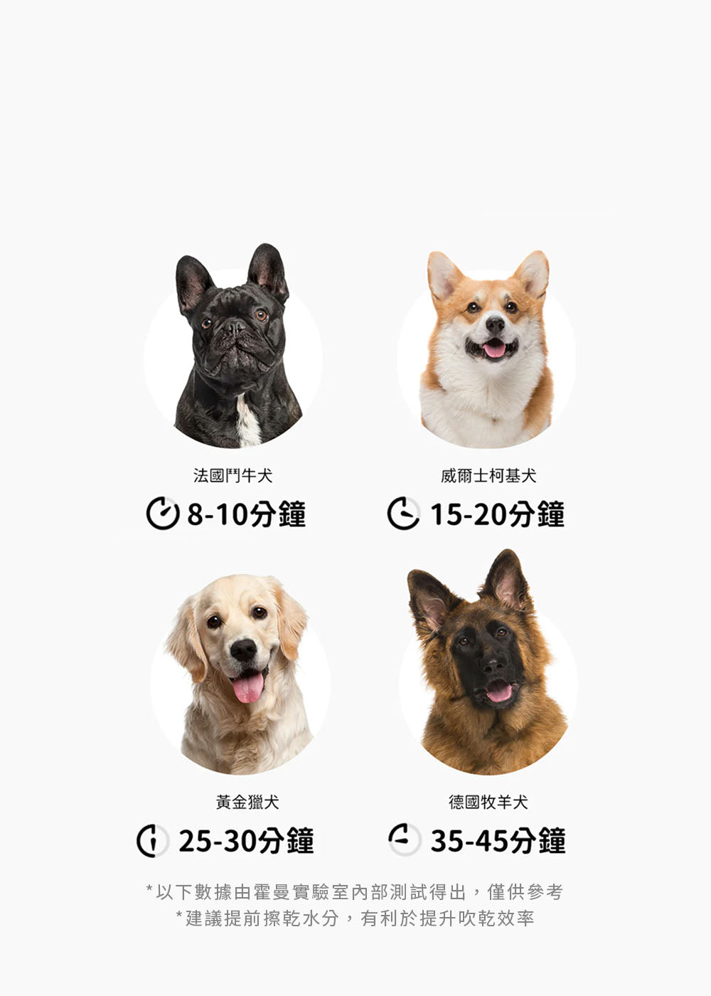 120m/s強勁風力,吹水機通過高速氣流,快速吹走毛髮表面水分