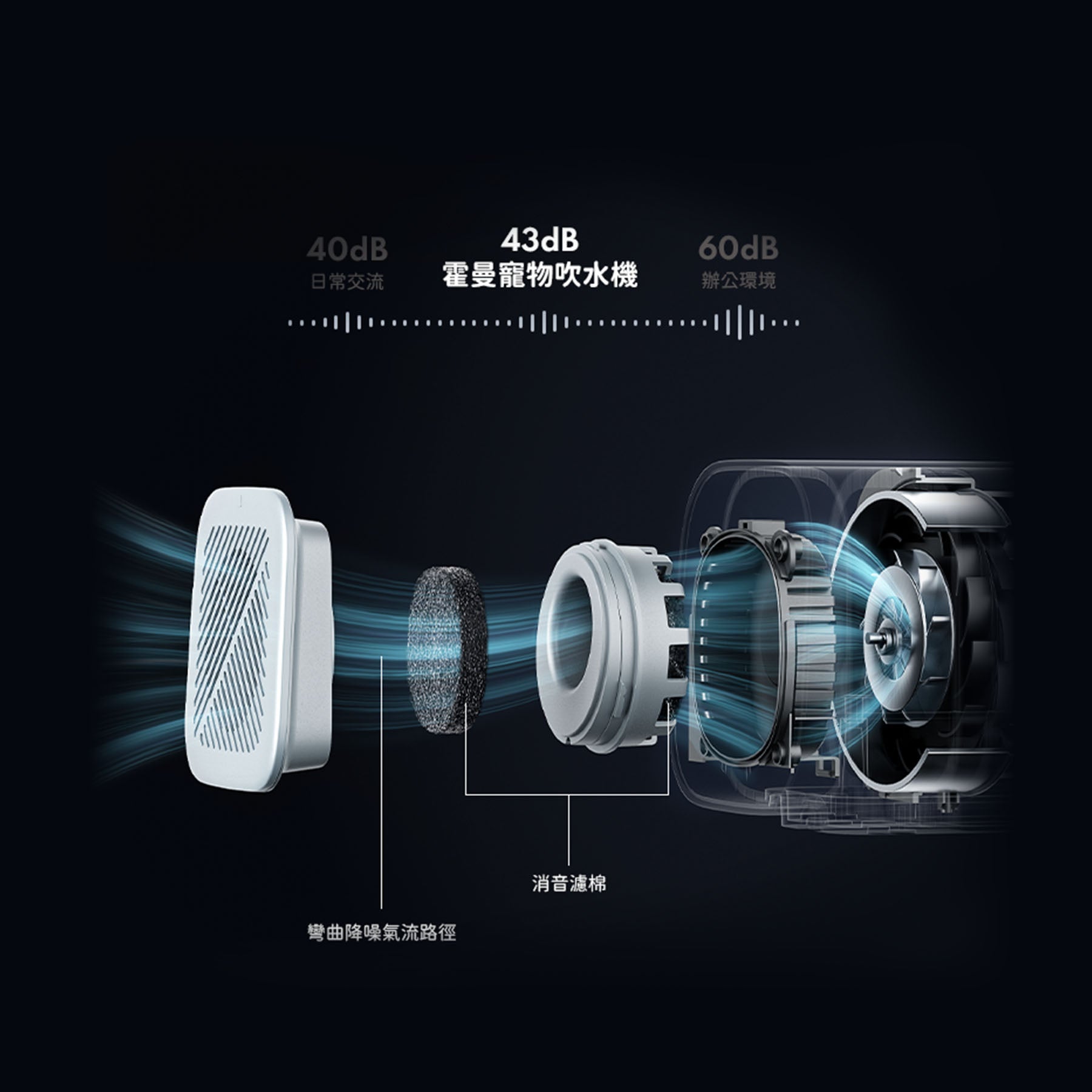曲線進風降噪風道+雙重消音棉,聲音低至43dB