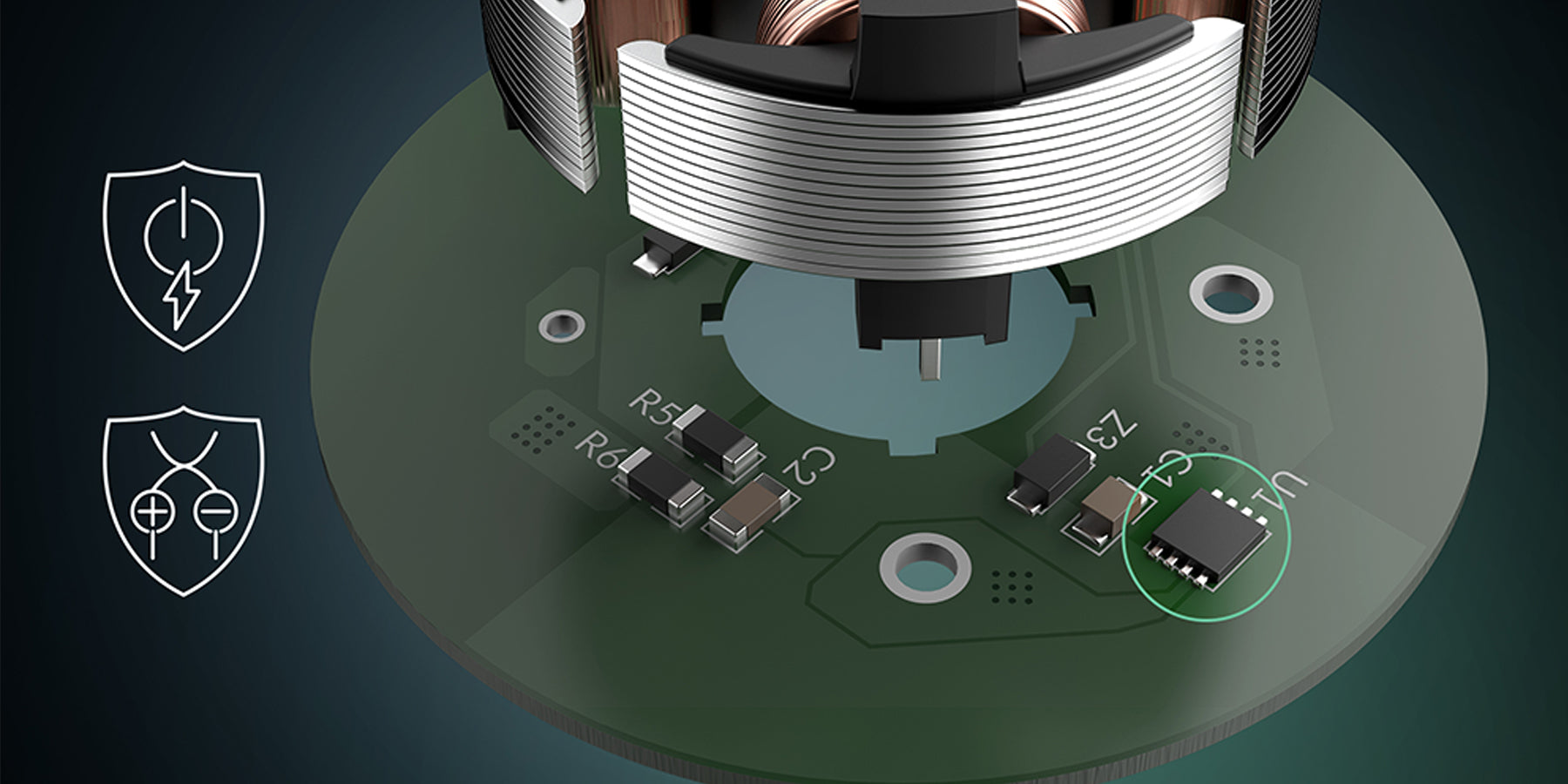 減少馬達噪音、補償負載波動,並具備防湧浪電流與反向極性保護功能。