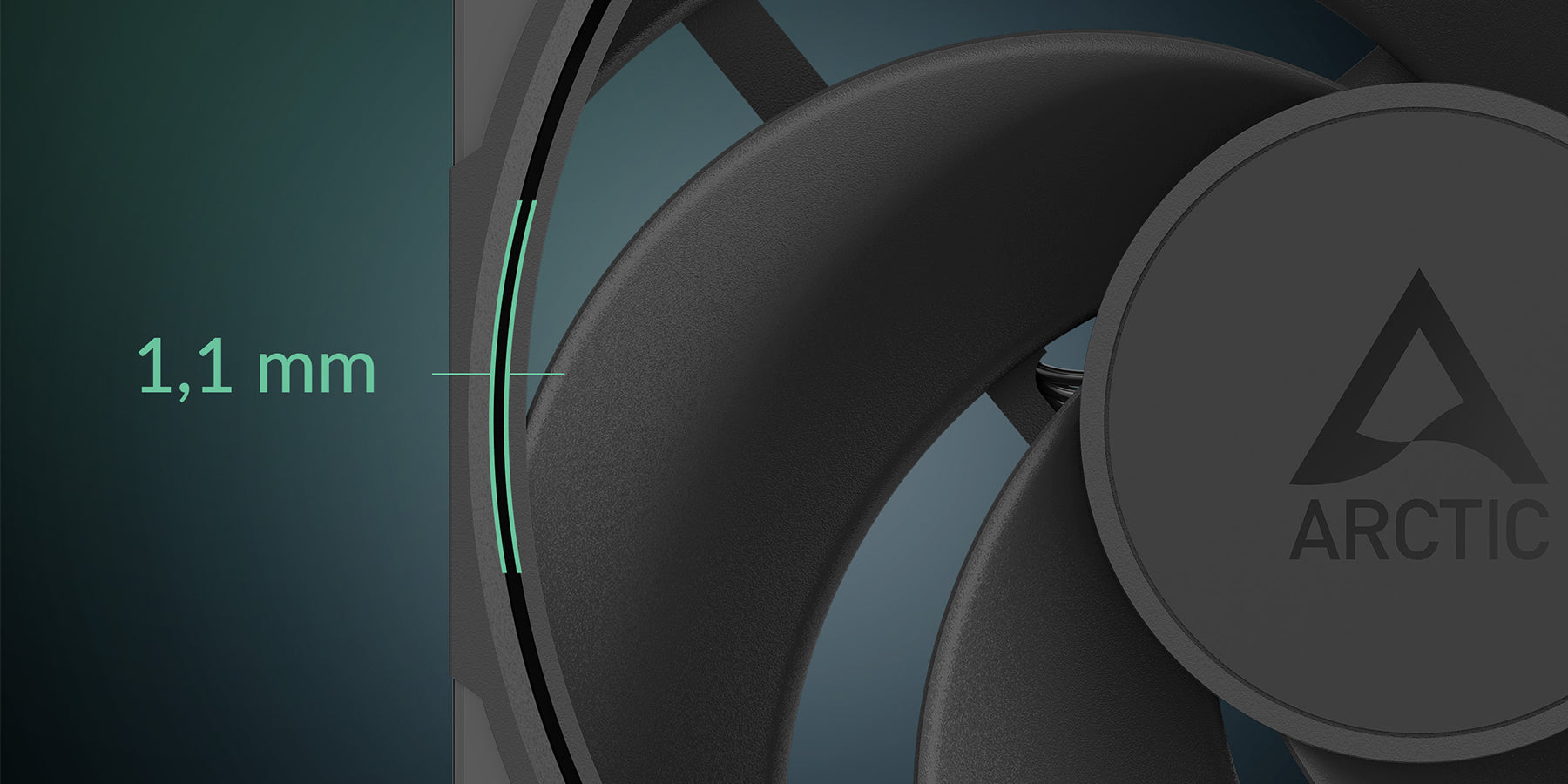 扇葉與外框僅有 1.1 mm 的極小間隙,實現更高的靜壓與最大的氣流效率。