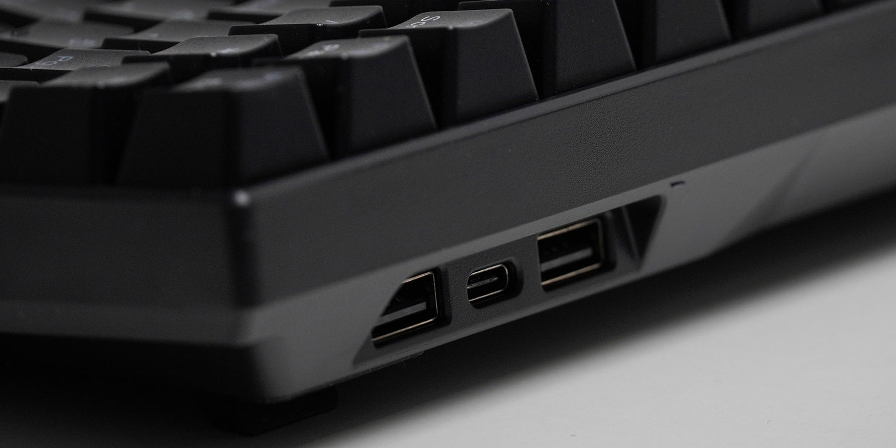 RK 100 在鍵盤身上設置了兩個 USB HUB其他周邊可以直接連接鍵盤,省去找主機USB孔的時間
