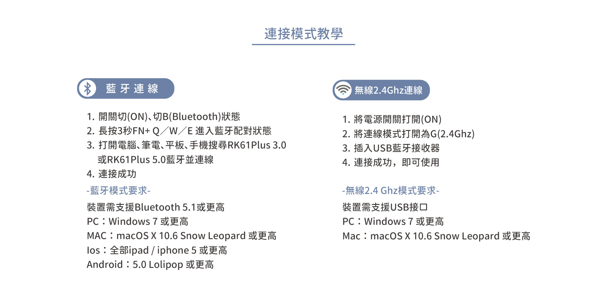 連接介面:藍牙5.0 / 2.4G無線 / TYPE-C有線